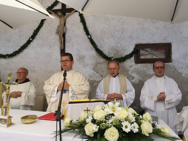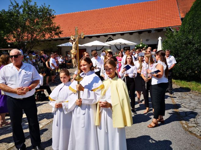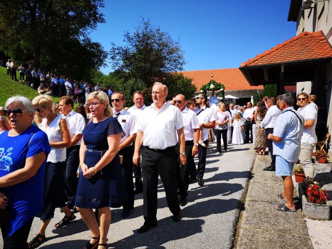 Nakon svečane procesije, sveta misa služena je na otvorenom, kod župne kuće u Tuhlju, a predvodio ju je vlč. Majk Rušec.