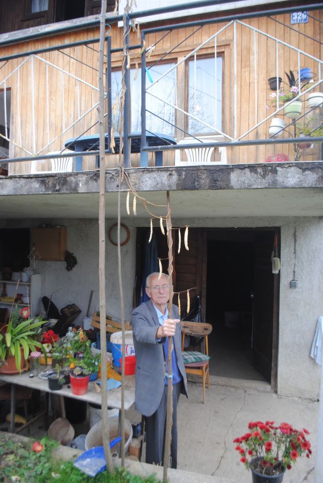 - Ovu lijepu biljku sam redovito zalijevao. Pokazivala je želju da se penje prema suncu, a ja sam tu njenu volju ispunjavao. Donio sam kolac, kojeg sam kasnije nadoštukao, po kojem se ova mogla penjati oko šest metara. To se događalo ispred podruma, a kad sam ja išao po vino, onda sam i njoj dao jedan lonček čiste vode - priča Petar Posavec. Ove jeseni saznali smo o tom čarobnom grahu. Lišće, koje je bilo bujno, na žalost je posve opalo, ali smo ipak zatekli plodove ove hranljive biljke koje su još visili u ljuskama.