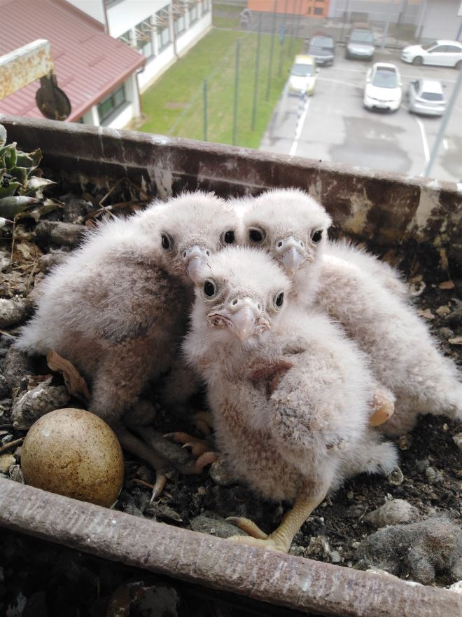 Gospođa Dragica Gajšak živi u zgradi uz samu osnovnu školu u Tuhlju, a posljednjih nekoliko tjedana na svojem balkonu imala je neubičajane stanare – male sokole vjetruše.