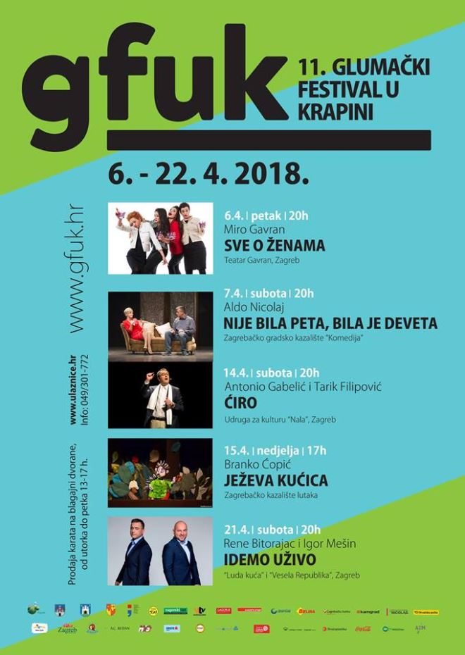 Drugi 'krapinski' vikend GFUK-a dovodi u subotu 14. travnja popularnog Tarika Filipovića i njegovu monokomediju 'Ćiro', s kojom je već obišao ogroman broj gradova čitave regije, država na prostorima bivše Jugoslavije i s kojom uistinu 'žari i pali' na ovim prostorima. Idućeg dana, u nedjelju, u ranijem terminu, od 17 sati, u Krapinu stiže 'Ježeva kućica' Zagrebačkog kazališta lutaka, koja će zasigurno oduševiti najmlađe posjetitelje. Posljednje festivalske subote, 21. travnja, u Krapini će gostovati Igor Mešin i Rene Bitorajac sa svojom novom predstavom, a zvat će se 'Idemo uživo', a koja se temelji na njihovom glumačko - voditeljskom iskustvu s televizije, kojeg su prenijeli na pozornicu. Predstava počinje u 20 sati.