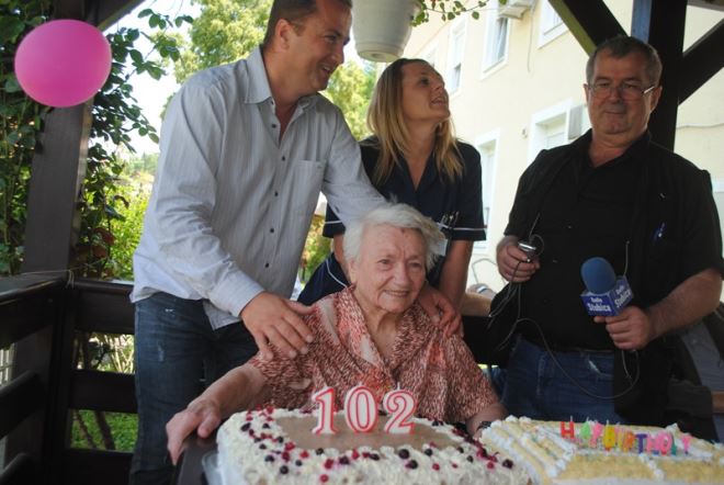 Kakva slučajnost! Upravo na Dan mladosti - radosti, baka Ana Vogrinc slavi dan svog rođenja. Ovaj put 102., a prema njenom izgledu i raspoloženju, moga bi se vratiti u svoje sedamdesete. Istina je, slabo vidi i čuje, ali događaje u stoljeću svog življenja pamti kao da su se desili jučer. Hrvatica je sa slovenskim pedigreom. Rođena je u selu Miokovićevo, kod Daruvara, a onda je otišla u Sloveniju, radila u administraciji na celjskoj gimnaziji, gdje se udala za Slovenca, ali je već 52 godine udovica.
