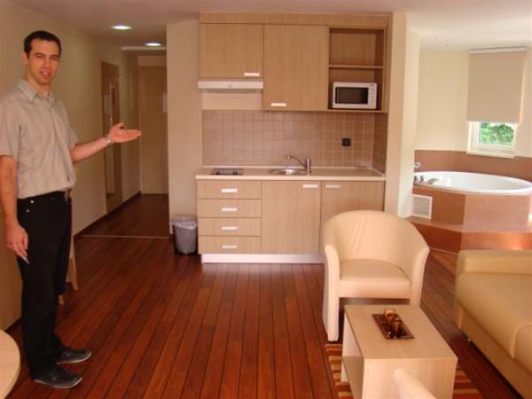 Hotel, kaže nam vlasnik, može smjestiti tridesetak ljudi koji će, kako smo se i sami uvjerili moći uživati u nesvakidašnjem luksuzu. Naime, pored razine opreme koja „ide“ uz četiri zvjezdice, tu je i niz blagodati koje gostu uljepšaju boravak na vrhu živopisnih K. Toplica. Dnevnim boravcima apartmana dominiraju veliki jacuzziji u kojema je izvorna termalna voda i iz kojih, ležerno se brčkajući i pijući pjenušac, možete uživati u panorami toplica koja vam se s blakona apartmana čine „kao na dlanu“.