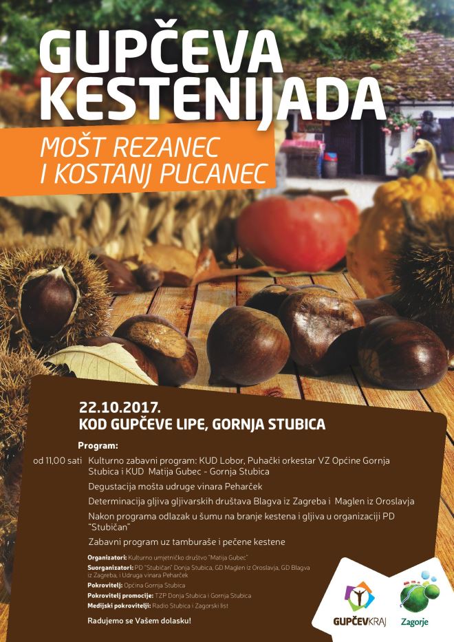 Ove se nedjelje kod Gupčeve lipe u Gornjoj Stubici održava kestenijada pod nazivom 'Gupčeva kestenijada – mošt rezanec i kostanj pucanec'.
