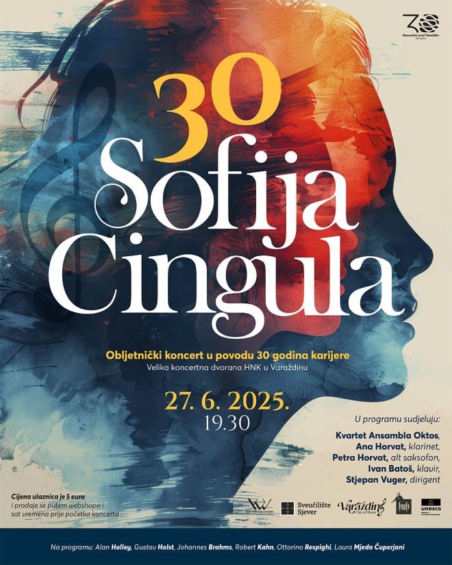 Naša poznata mezzosopranistica, mr. art. Sofija Cingula, izvanredna profesorica na Odsjeku za glazbu i medije Sveučilišta Sjever, trideset godina umjetničkog rada obilježit će koncertom u Velikoj koncertnoj dvorani varaždinskog kazališta, u petak, 27. lipnja.