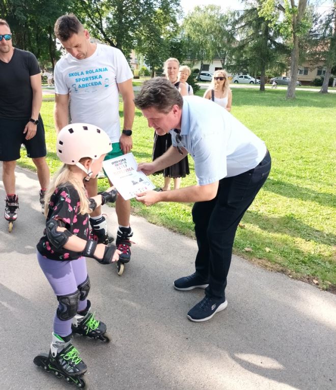 Zamjenik gradonačelnika Grada Varaždina Miroslav Marković i voditelj Odsjeka za sport i rekreaciju Dražen Cesar prisustvovali su zadnjem satu ljetnog ciklusa Škole rolanja za predškolce i školarce Sportske abecede te mališanima uručili zaslužene diplome.