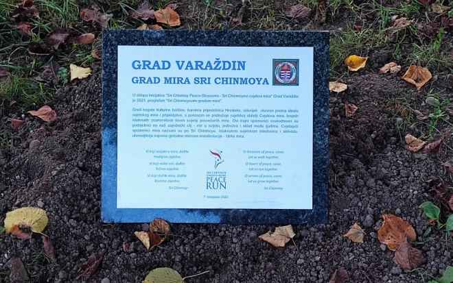 Utrku mira je utemeljio Sri Chinmoy 1987. godine, a u Hrvatskoj se održava od 1989. godine. Grad Varaždin je do sada pet puta podržao utrku (1991., 1995., 1999., 2006. i 2016.), a sada 2023. godine postaje „Grad mira Sri Chinmoya“. Poruka Utrke mira je vrlo jednostavna: ako možemo trčati zajedno u miru i skladu, tada možemo zajedno živjeti u miru i prijateljstvu! Sukladno poruci utrke koja protežira mir, tabla je u Varaždinu postavljena baš u Parku Ivana Pavla II.
