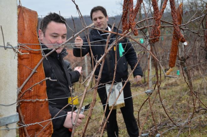 Uz blagoslov župnika obavljena je i prva rezidba trsja, načičkanog kobasicama i špekom, koje je domaćin polio vinom. Među nekoliko obrezivača, bila je i Bojana Posavec koja je uspješno dečkima pokazala kako se to radi. Druženje je zaključeno u podrumu i dvorištu vinarije Prekratić, uz srneći gulaš i dobru kapljicu, a čitav ceremonijal je glazbeno popratio kumrovečki "Veseli trio".