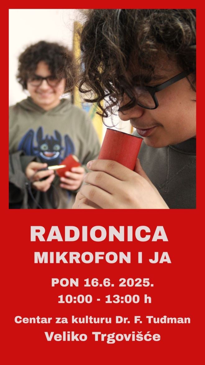 U Velikom Trgovišću pod vodstvom glazbenika i glazbenog pedagoga Nikole Santra kreće jednodnevna radionica izrade mikrofona pod nazivom 'Mikrofon i ja' u kojoj će svaki polaznik izraditi svoj mikrofon. Nikola je bio član legendarne grupe Haustor, a trenutno svira u etno sastavu Cinkuši.