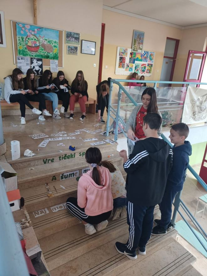 U srijedu 20. travnja uljepšali su stepenice svoje škole ispisujući riječi pjesme Kaj proslavljenoga kajkavskog pjesnika Dragutina Domjanića. Učenici predmetne nastave vrijedno su izrezivali šablone, lijepili ih na stepenice te potom bojili. Tako su uživali u timskom radu i prostor svoje škole učinili veselijim. Proljetna je radionica održana pod mentorstvom učiteljice Hrvatskoga jezika Silvije Greblički. Čestitke vrijednim djevojkama i momcima iz PŠ Dubrovčan!