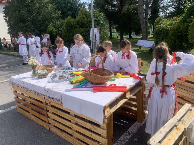 Mali Čuvari baštine i članovi dramsko-recitatorske grupe prikazali su stare običaje, zanate i već zaboravljene igre. Njih su pripremale učiteljice Jagoda Šmit i Jadranka Plantak.