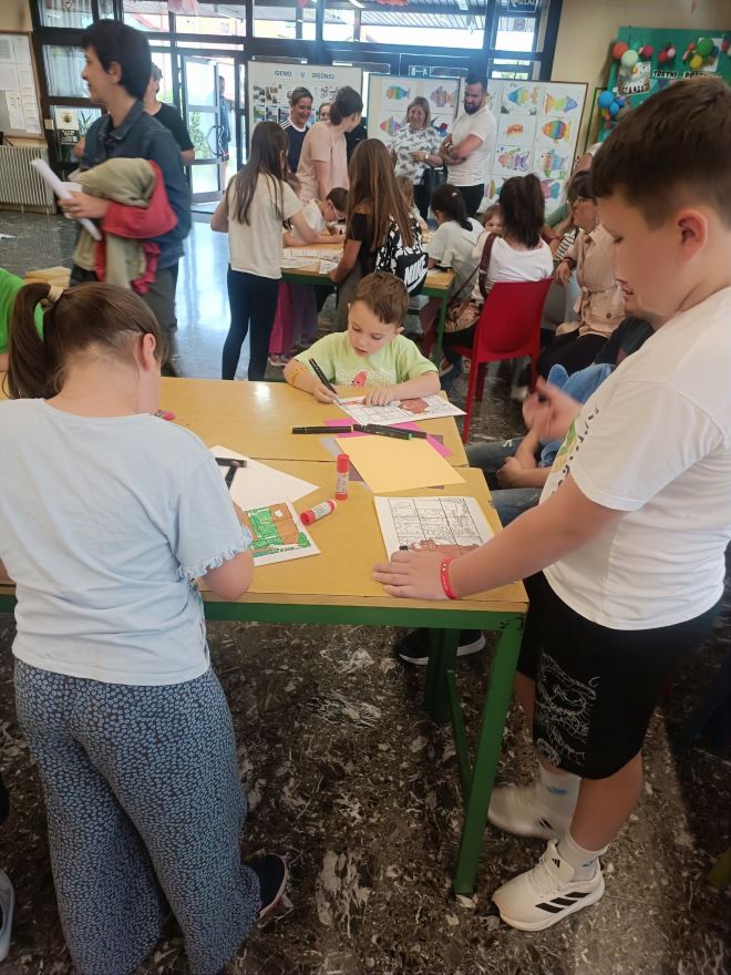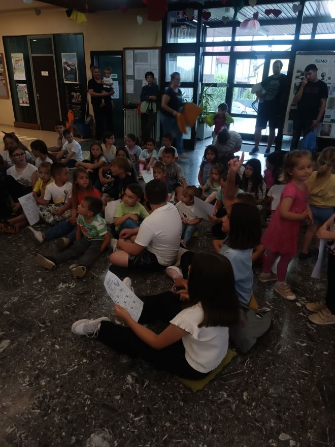 Igru šumsku tražilicu na početku, interpretaciju priče i motoričke igre za kraj pripremila je Ivana Junković kreativno dajući čaroliju priči i druženju u predvorju škole.