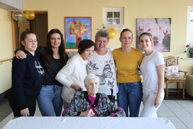 Vlasnica doma Mirjana Šimunić Pezelj otkrila nam je da je ovo prvi puta da netko od korisnika doma slavi 100. rođendan. - Nadamo se da bismo kroz dvije godine mogli imati još jednu ovakvu proslavu. Inače je projek godina korisnika smještenih kod nas visok, 94 -95 godina, malo je ovih mlađih – kaže Šimunić Pezelj. za slavljenicu dodaje da je puna duha. - Brzo se snašla kad je stigla, imala je strašnu želju da prohoda, ali već je imala više 90 godina, noge su atrofirale i na žalost nije bilo šanse. Ima želju za životom još uvijek, voli se našaliti, malo joj smeta što slabije čuje, vedra je i nadamo se da će biti još rođendana – kaže Mirjana.