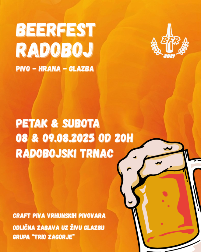 Beerfest Radoboj održat će se u petak i subotu, 8. i 9. kolovoza, u prekrasnom ambijentu Radobojskog trnaca, s početkom u 20 sati.