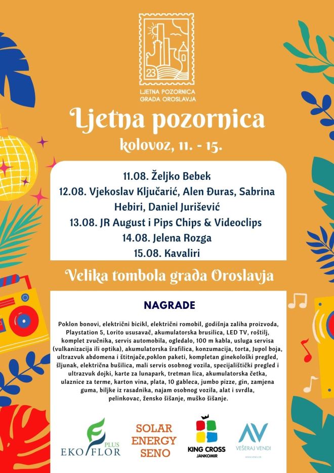 BIT ĆE TO PRAVA FEŠTA: Najbolja glazbena imena stižu u Oroslavje, a tu je i bogata tombola!