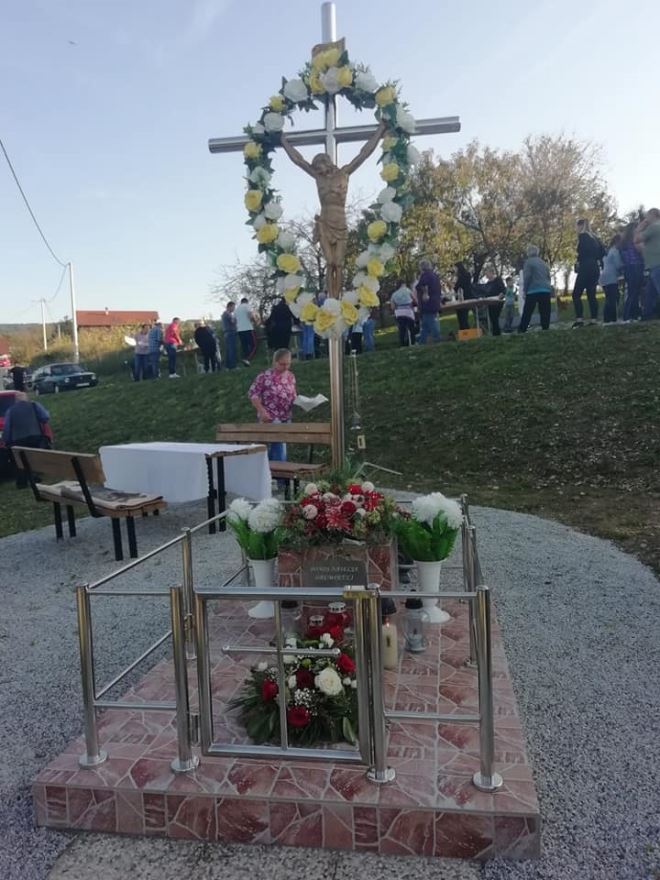 Raspelo su postavili mještani, a blagoslovio ga je vlč. Ivan Brlečić