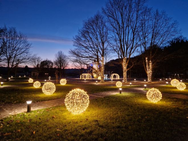 Sve počinje od impresivnih božićnih jelki koje krase prostor, stvarajući ugodnu i toplu atmosferu. Vesele ukrase susrećete na svakom koraku, a ogromne ukrasne kugle s tisućama lampica stvaraju magičan ambijent. Bazen, inače već jedno od najljepših u Zagorju, sada je još posebniji s božićnim i šarmantnim ukrasima.