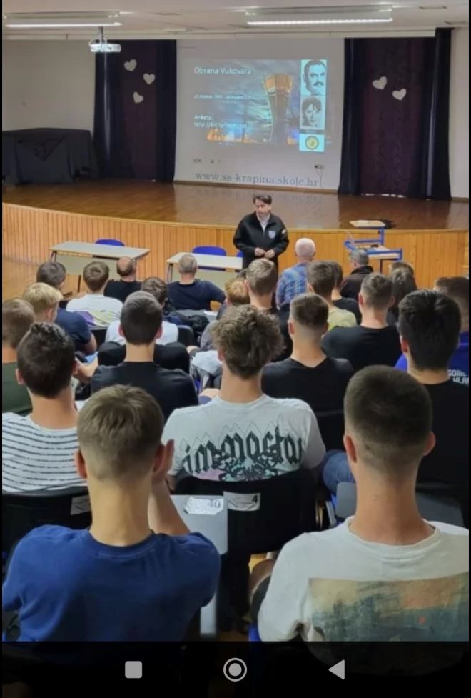 U okviru projekta Očuvanje digniteta Domovinskog rata i promicanje istine o Domovinskom ratu, branitelji iz Zajednice udruga branitelja KZŽ, u Srednjoj školi Krapina održali su predavanje na temu „Obrana Vukovara”.