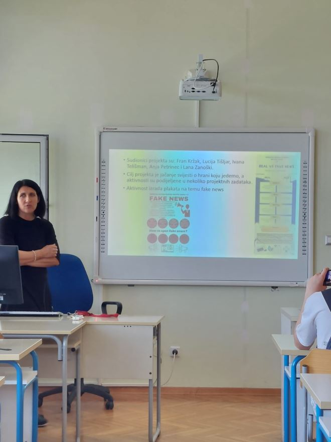 - Jedna od aktivnosti u projektu bila je istraživanje medija i prepoznavanje pogrešnih informacija o hrani. Na temu “Fake news” učenici su izradili postere. Tijekom projekta učenici su istraživali sastav hrane i vrste aditiva koji se dodaju hrani. U jednostavnim eksperimentima dokazali su prisustvo tanina u čaju i benzojevu kiselinu u pićima. Posebno su bile interesantne prirodne boje u čajevima koje su mijenjale boju ovisno o pH vrijednosti zbog čega se čajevi mogu koristiti i kao pH indikatori - pojasnila je ukratko profesorica Futivić.