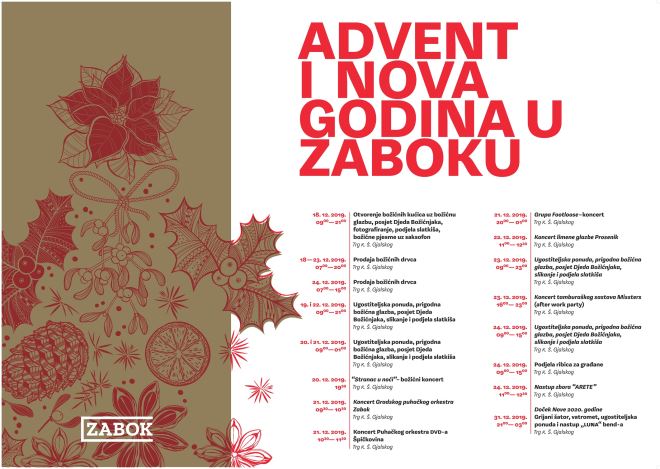 Jučer je na Trgu K. Š. Gjalskog započela manifestacija 'Advent u Zaboku'. Djecu je jučer posjetio Djed Božićnjak s kojim su se mogli fotografirati, dijelili su se slatkiši, a tu su bile i božićne pjesme koje su dale poseban čar. Valja reći kako je počela i prodaja božićnih drvca te će se ona na trgu moći kupiti do 23 prosinca od 7 do 20 sati.