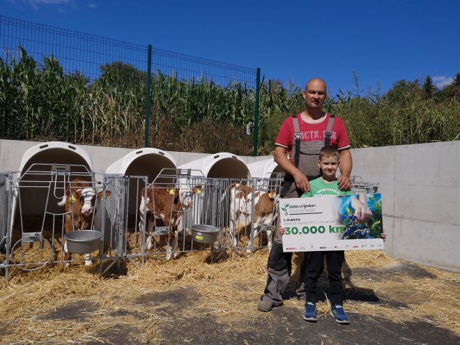A sam posao sada je ipak puno lakši. Sam objekt je kapaciteta 60 muznih krava, svaka krava ima svoje ležište i svoje mjesto na hranidbenom hodniku. - Najmanja telad je vani u igluima, imaju svoju mikroklimu i uživaju. Za zbrinjavanje stajskog gnoja složiti smo lagunu ispod same farme. Na podu su rešetke, čisti ih robot, koji ima 4 zadane rute, potom se vraća na punjač, napuni i kreće opet. Hranidba je složena tako da mikser prikolicom vozim hranu, a tu su i dvije automatske hranilice. Krava dođe i responder koji ima oko vrata očitava količini mlijeka te odredi koliko smjese smije pojesti. Može dolaziti bezroj puta, ali ima ograničenje koliko može dobiti. Kasnije 'hodi zabadava' – našalio se Tomislav.