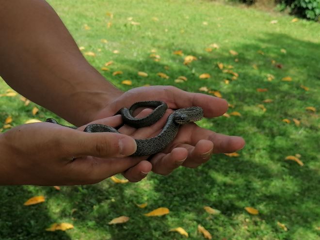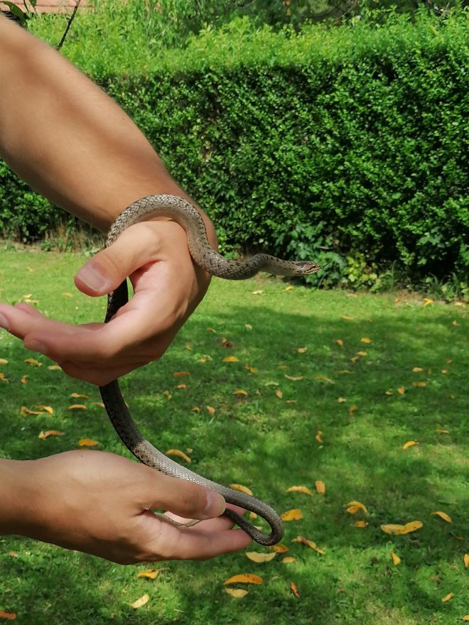Nakon što ju prouči, navikao je zmiju primiti u ruke, a onda ju ukloniti iz dvorišta, negdje u okolne travnjake ili šumu, kako ne bi došla u doticaj s kućnim ljubimcima.