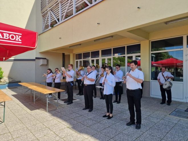 Druženje se nastavilo na prostoru ispred škole uz sviranje Gradskog puhačkog orkestra Zabok, pod vodstvom maestra profesora Marka Bobičaneca. Grad Zabok je već po tradiciji počastio sve vjernike i građane prigodnim domjenkom.