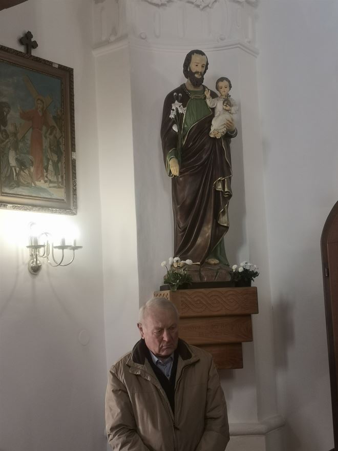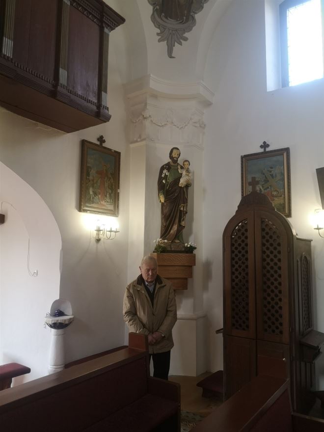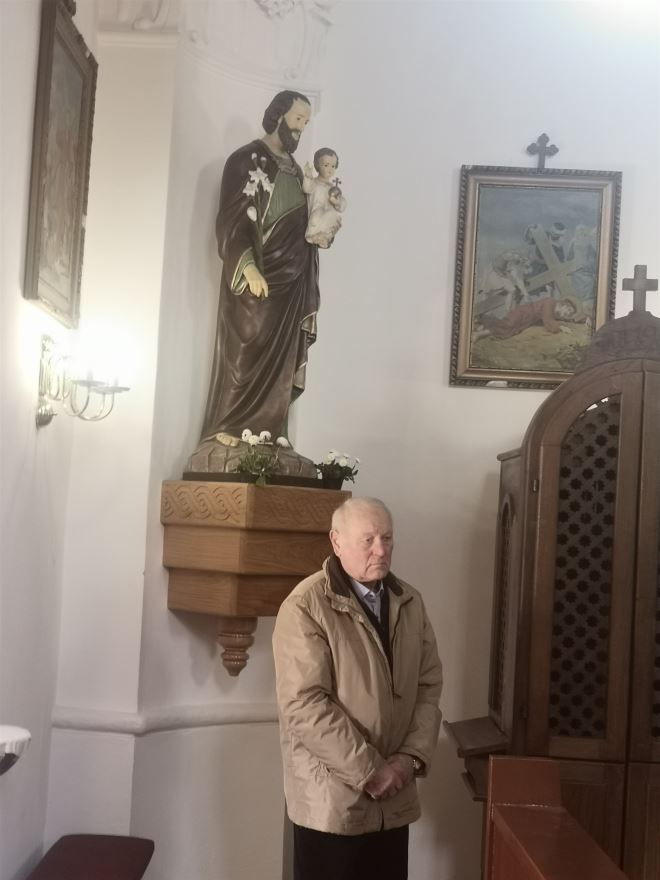 'Davno sam računao s tim da bih nabavio kip, ali znate kako je stalno, trebaš nekaj kupiti i nisam mogao izdvojiti toliki novac i sad je Bog dal, sve se poklopio. Naručen je iz Italije, po narudžbi. Sliku sam dobio od jedne tvrtke iz Splita, ovaj kip mi se najviše dopao jer mi takvog kipa svetog Josipa nemamo s malom Isusekom i želio sam da nam to malo podigne crkvu. Lijepo ga je vidjeti i hvala Bogu i meni je drago, pogotovo mojoj obitelji, što smo imali snage sve to skupa platiti. Inače, otac mi je bio Josip, jedan od sinova mi je Josip i štujemo Josipa i sve Božje svece, a pogotovo Josipa on nam je najbliži, zaštitnik obitelji i države Hrvatske, ispričao nam je dugogodišnji obrtnik bravar Juraj Mirt.