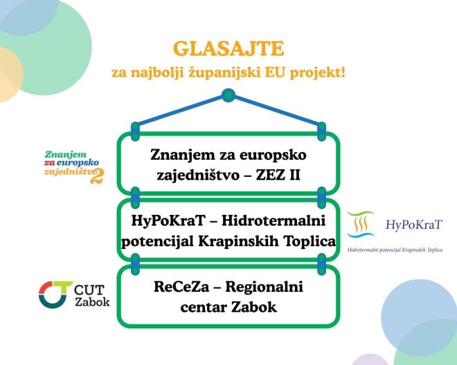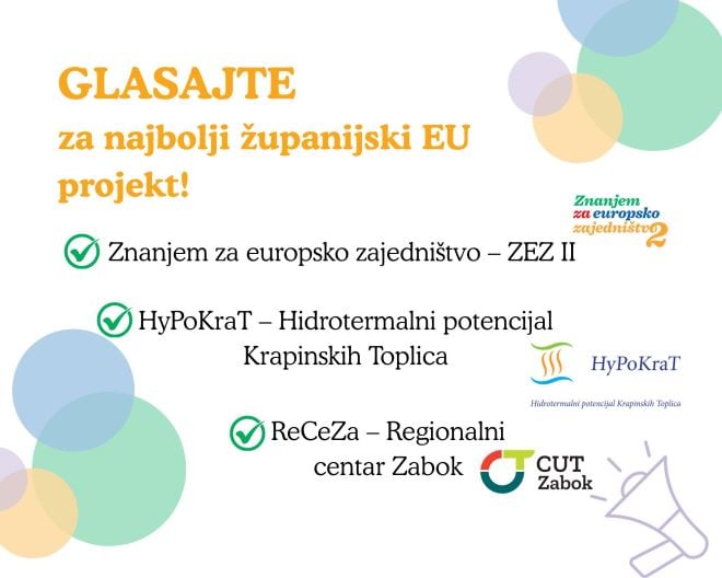 U finale izbora najbolji županijski EU projekt u Hrvatskoj ušla su čak tri projekta s područja Krapinsko-zagorske županije: HyPoKraT – Hidrotermalni potencijal Krapinskih Toplica, ReCeZa – Regionalni centar Zabok te Znanjem za europsko zajedništvo – ZEZ II.