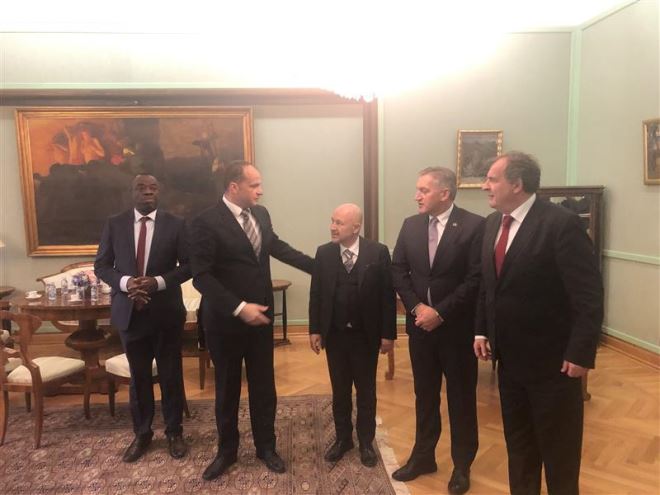 Prijem je održan povodom jučerašnjeg otvaranja ureda WBAF-a (World business angels investment forum) za područje Europske unije, koji je smješten na području Krapinsko - zagorske županije, u dvorcu Bračak. Delegaciju su predvodili predsjednik WBAF-a Baybars Altuntas i župan KZŽ Željko Kolar, u kojoj su bili i ministar inovacija i poduzetništva Republike Kosovo Besim Beqaj, ministar Republike Makedonije zadužen za investicije Zoran Šapurić i ministar razvoja Republike Gane Ibrahim Mohammed Awal. Delegacija je posjetila i Hrvatski sabor, za koju je prijem održao potpredsjednik Sabora Siniša Hajdaš Dončić.