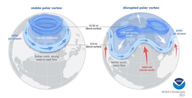 U slučaju kad strujanje u polarnom vrtlogu oslabi ili se prekine, stvore se uvjeti u kojima se hladan zrak počinje spuštati u umjerene geografske širine. Ova pojava utječe na vrijeme na cijeloj sjevernoj polutci, ponekad više na Sjevernu Ameriku, a ponekad na Europu i Aziju. Ona nije neuobičajena, događa se gotovo svake zime, moguće čak i više puta, s varirajućim intenzitetom. Dakle, radi se o prirodnom zahladnjenju, odnosno promjeni zračne mase nad našim područjem.