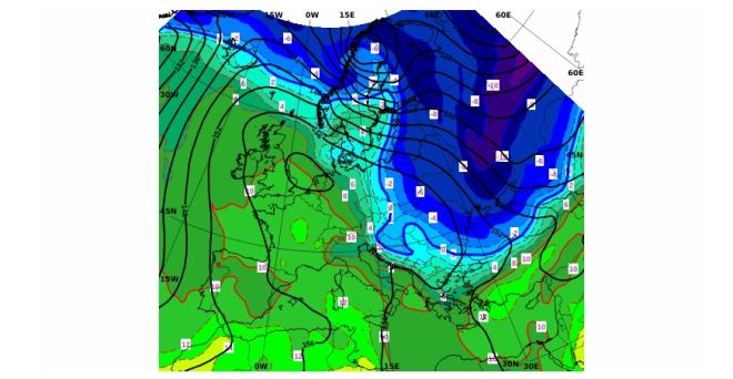 Na Jadranu će prevladavati sunčano i toplije od prosjeka za ovo doba godine. U unutrašnjosti mjestimice umjerena i povećana naoblaka, još u petak i subotu u prvom dijelu dana u nizinama često magla. U subotu (Slika 2.) dotok hladnog zraka sa sjeveroistoka, pritom će zapuhati umjeren, ponegdje i jak sjeveroistočni i sjeverni vjetar, na Jadranu bura, umjerena i jaka, na udare olujna. Stoga će u nedjelju danju biti osjetno svježije, a u ponedjeljak ujutro u unutrašnjosti vjerojatan je mraz pri tlu.