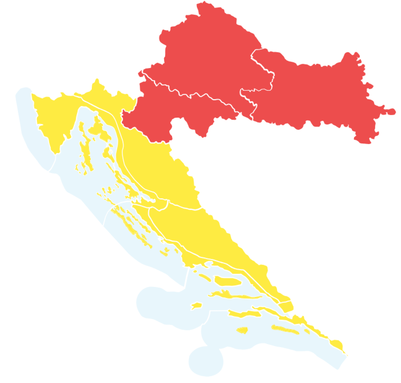 Za gospićku, kninsku, riječku, splitsku i dubrovačku regiju u četvrtak je upaljen žuti alarm, baš kao i u srijedu.