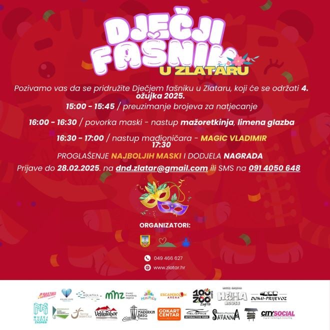 Grad Zlatar poziva djecu i roditelje na Dječji fašnik u Zlataru 4. ožujka.