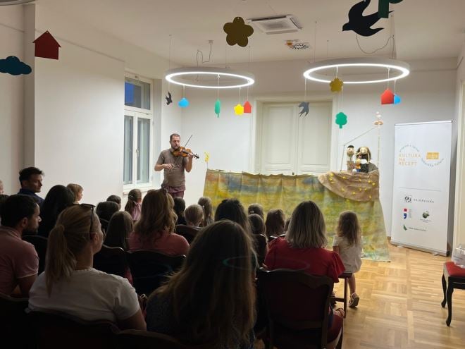 U četvrtak, 4. rujna, Fellerovom zgradom gdje je smješteno sjedište Kajkaviane, odzvanjao je vedar i zarazan dječji smijeh. Tog se dana, naime, održala lutkarska predstava pod nazivom Što tatica radi uvijek je pravo u produkciji umjetničke organizacije Kruna Tarle Art.