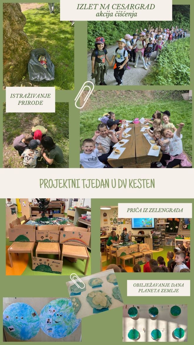 Tako je uz Dan planeta Zemlja proveden cijeli Projektni tjedan ispunjen ekološkim aktivnostima – od sadnje jagoda, lutkarske predstave, likovnog izražavanja i oblikovanja na temu Planeta Zemlje, do izleta na Cesargrad, čišćenja okoliša i piknika u prirodi.
