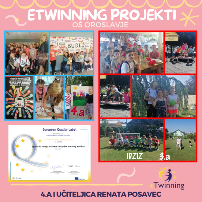 Učiteljice Snježana Sitarić-Knezić i Renata Posavec iz Osnovne škole Oroslavje dobile su čak 6 Europskih oznaka kvaliteta za sudjelovanje u eTwinning projektima za proteklu školsku godinu 2020./2021., što je izvrsna nagrada za sudjelovanje i rad na projektima u eTwinning zajednici.
