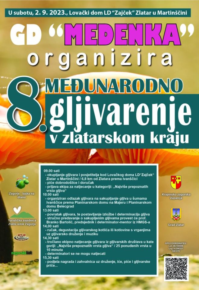Gljivarsko društvo Medenka vas poziva da im se pridružite na gljivarskoj manifestaciji, koja se održava danas, 2. rujna kod lovačkog doma LD “Zajček” u Martinščini.