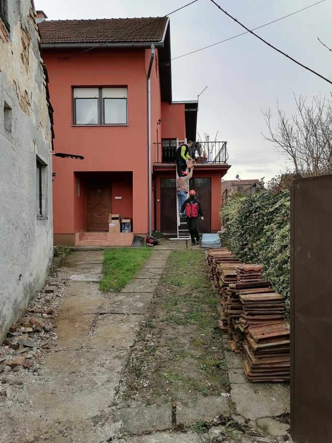 - Već u dolasku nailazimo na naše, Nikolu Tadića krovopokrivača koji sanira krov rodbine i susjeda. Mi idemo u Dugu ulicu, saniramo štete na krovovima tri objekta, idemo po pozivu u ulicu Radoslava Lopašića, tamo druga vrsta crijepa, čovjek ga nabavio, vozi ga s centralnog skladišta, mi pokrivamo. Radosni su što smo uspjeli, traže da se skupa slikamo za uspomenu. No, mi nismo zadovoljni, obećali smo jednom mještaninu u Dugoj ulici prekriti oštećen krov, ako nabavi biber crijep. Idemo tamo, ali usput uklanjamo kapu koja prijeti da padne na kući u ulici Ljudevita Gaja. Tu ostavljamo višak crijepa. Idemo u Dugu ulicu i gle čovjek je nabavio crijep. Udara kiša, no ne odustajemo i to rješavamo i spremamo se kući. U međuvremenu, dvojica idemo prema Glini sa dijelom humanitarne pomoći, obilazimo DVD Šatornja koji je tražio pomoć u higijenskim potrepštinama i hrani, te im ostavljamo - ispričao je.