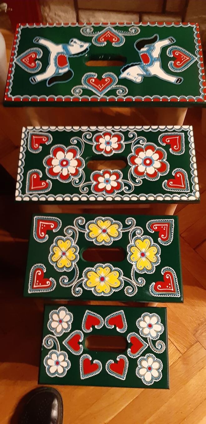 Stjepan je ponosan na svoj traktor od 22 dijela i veliki avion, ali i na vjetrenjače koje krase parkove. Prvi su, kaže i počeli s tim velikim predimenzioniramim igračkama kada su na jednoj izložbi - trijenalu zagorskog suvenira - izradili su kaj sobu. Ljiljana trenutno oslikavala staru zibaljku za unučicu koja je na putu. Zibaljka je stara preko 100 godine. To joj je poseban gušt. Cesari zasada nemaju zainteresiranih za nastavak tradicije, no nikad se ne zna. Možda baš i ova mala unučića koju tako žarko išćekuju se u jedno doba života zainteresira za zanat koji se 'rodio' upravo u ovom kraju uz hodočasničke putove, prehranjivao mnoge