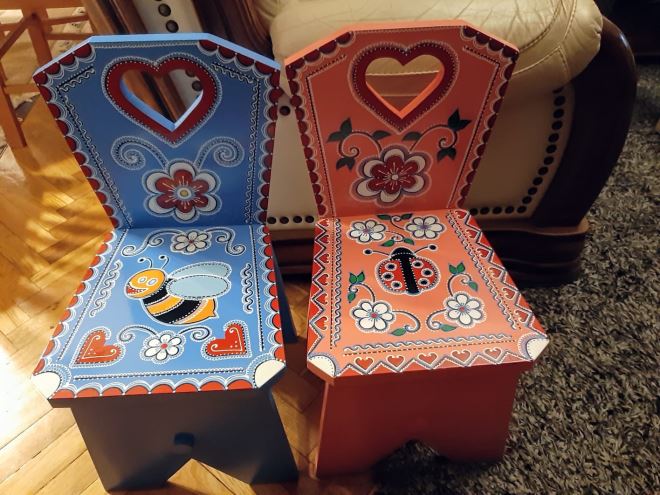 - Nema drveta iz kojeg se ne može napraviti igračka. Možda samo ne iz hrastovine, ona je pretvrda. I bukovina je tvrda, no bukovo drvo stvara najljepši zvuk za krila leptira koja moraju klepetati - pokazuje nam Stjepan. - Vi možda ovaj moj posel oko drveta zovete težim, no ja ja imam osjećaj da je posao od moje supruge teži. Ja nemam živaca za oslikavanje, imam grube, debele prste. Bi ja oslikal, ali to ne bilo toliko lijepo - pohvalio je Stjepan svoju suprugu.
