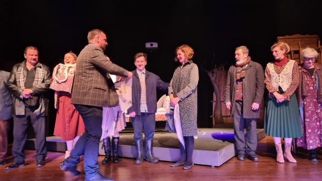 U nedjelju je u prepunom Domu kulture u Oroslavju izvedena i posljednja predstava u sklopu manifestacije „Proljeće u Oroslavju“. Vrhunska glumačka postava kazališta Kerempuh zabavljala je publiku puna tri sata tijekom kojih je omiljena dramska serija „Gruntovčani“ oživjela na našoj pozornici, a nezaboravni likovi Dudeka i Regice, Presvetlog i Cinobera, Matule, Babice i drugih našli su se pred novim izazovima i novim problemima modernog doba 21. stoljeća.