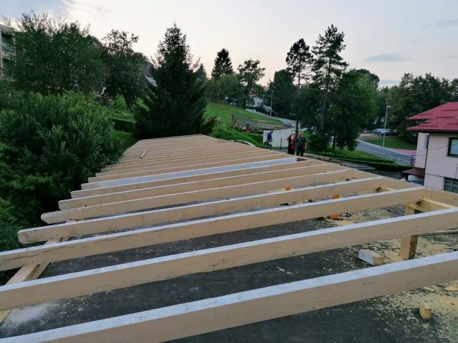 Dobrovoljno vatrogasno društvo Zabok zahvaljujući donaciji Grada Zaboka i Komunalnog Zabok u drvenoj građi započela je s postavljanjem krovne konstrukcije na garažne prostore