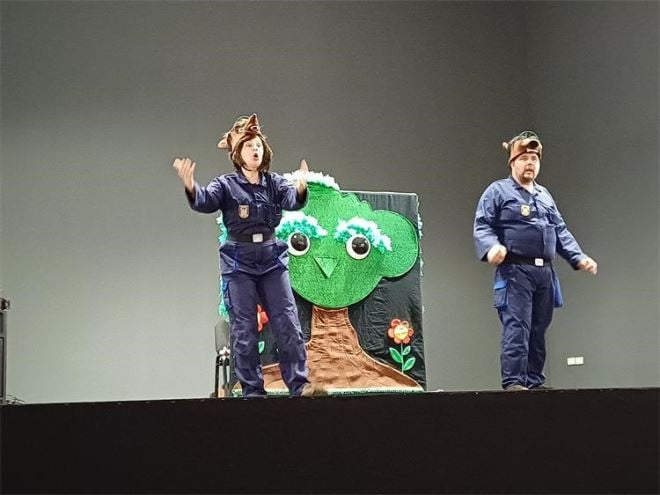 Na poziv Pučkog otvorenog učilišta dr. Jurja Žerjavića iz Zlatara, policijski službenici Policijske postaje Zlatar Bistrica, Davor Klenkar i Tajana Čorko, u ponedjeljak su sudjelovali su na dječjoj kazališnoj predstavi "Medo i Kuna, policajci u akciji" u izvedbi Kazališta Smješko, priopćila je PU krapinsko - zagorska.