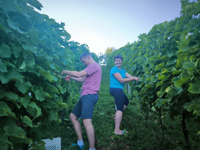 Dario Poštek ranu berbu ima svake godine, nekad početkom, nekad sredinom kolovoza, jer radi se o sorti Solaris, koja dozrijeva znatno ranije od ostalih sorata.
