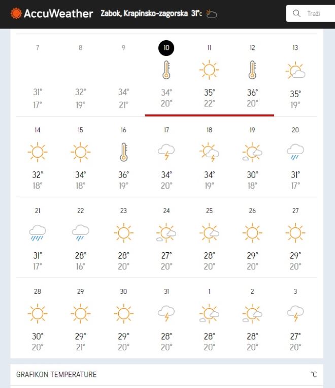 Kad je u pitanju ovaj toplinski val, prema AccuWeatheru, on bi u Zagorju trebao završiti tek krajem idućeg tjedna.