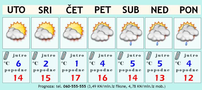 Za kraj nedjelje i tijekom ponedjeljka neki prognostički izračuni pokazuju opet mogućnost za malo kiše, ali prema prvim pokazateljima neće biti tako obilna kao početkom tjedna. Jutarnja temperatura bi za vikend mogla biti malo viša, a dnevna slična ili čak opet za stupanj-dva hladnije. Stiže nam ona prava jesen, ali to nije ni čudno s obzirom da smo već blizu kraja listopada.