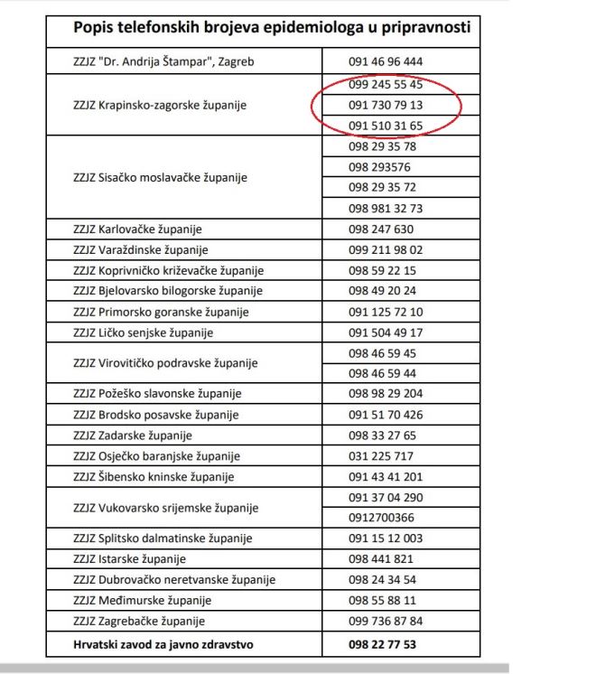 U nastavku donosimo popis dežurnih epidemiologa po županijama ukoliko sumnjate da ste zaraženi.