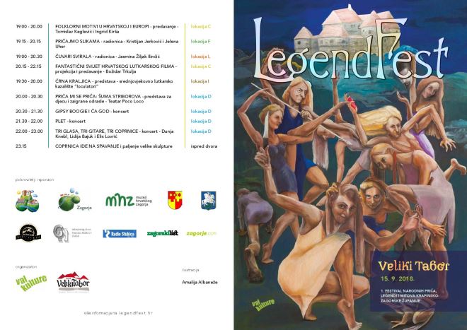 Na festivalu će biti održano više od desetak različitih programa, događanja u kojima će sudjelovati preko trideset umjetnika iz gotovo svih područja umjetničkog djelovanja - od likovne, glazbene, plesne, kazališne i filmske umjetnosti do fotografije i kulturne baštine te tako oživjeti narodnu predaju, legende i mitove Krapinsko-zagorske županije.