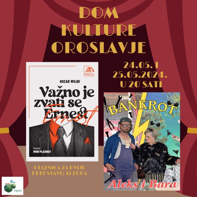 U Domu kulture u petak, 24. svibnja s početkom u 20 sati igra kazališna predstava 'Važno je zvati se Ernest', u izvedbi kazališta Komedija iz Zagreba.