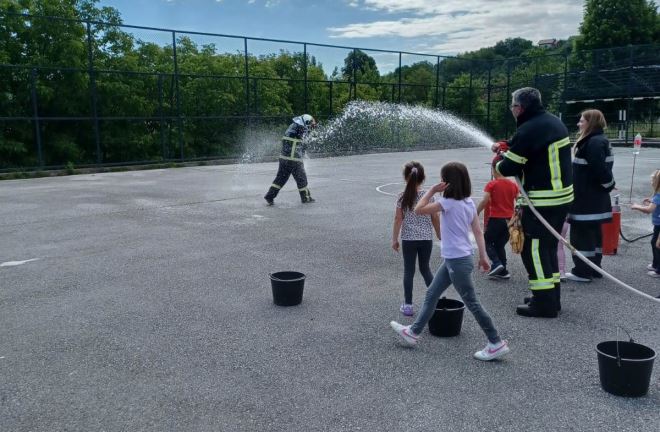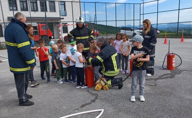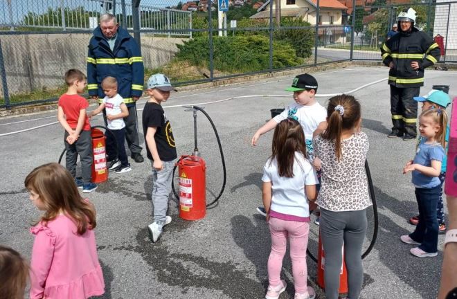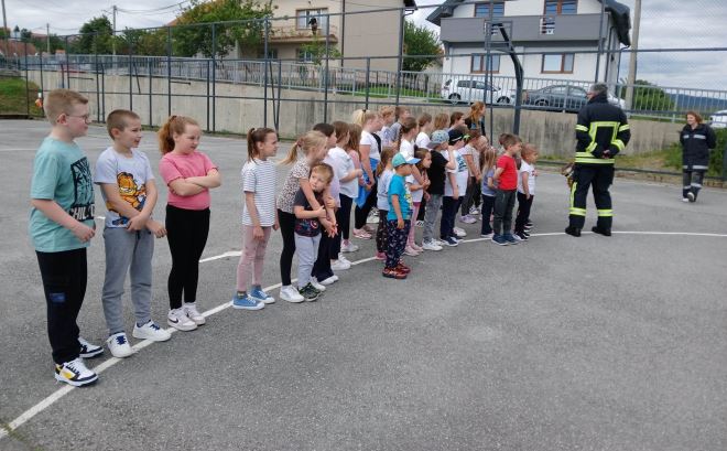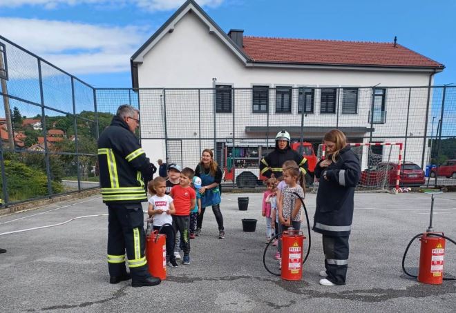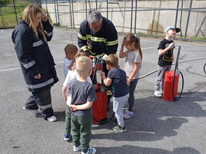 Na Danu otvorenih vrata zapovjednik DVD-a Laz Damir Joć i suradnici upoznali su djecu sa vatrogasnim pozivom, sa opremom i vozilima, kao i sa vježbom koju na natjecanjima izvode djeca od 6 do 12 godina.